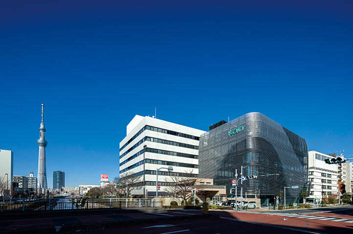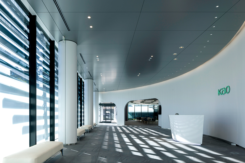 2023年に100周年を迎えたtotal over スポーツベットすみだ事業場に、高い環境性能を持ち、BCP機能強化を図りながら事業場の顔「KAO」となる新棟を計画した。外装デザインコンセプトである『輝く水の流れ』を曲げとねじり加工を行ったアルミ押出型材ルーバーを用いて表現した。積層するルーバーには『智層』を、浮かび上がらせたアーチには『ゲート』の意味を持たせた。ルーバー断面形状をかつて製造していたtotal over スポーツベット石鹸「ホワイト」の形状とすることで、事業場の歴史を記憶させている。技術研究所でのルーバーの振動、音、部材強度の検証や3Dシミュレーションによる温熱環境改善の確認も行った。またZEB Readyの取得や既存杭の再利用にも取り組んでいる。