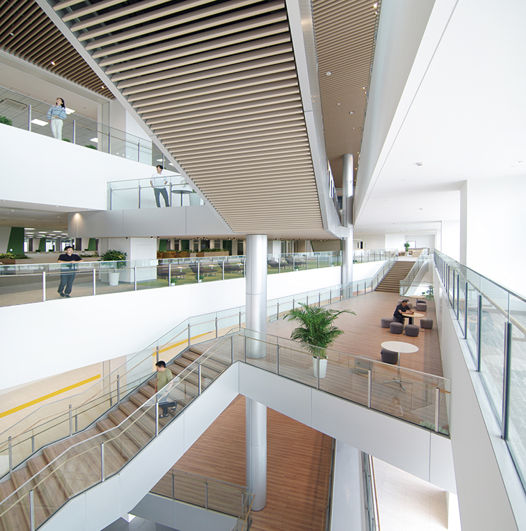 豊田汽車技術開発(上海)有限公司が、上海の自動車産業の技術革新地区にてモビリティ社会の実現に向けたスポーツベット ボーナス 登録カジノ研究を行う、自然にも社会にも開かれ、人と環境が調和し、働く人が共創し合う公園のような場=イノベーションパークを目指した研究開発拠点である。南北に縦動線と設備諸室を配置し、中央に60m×60mのユニバーサルスペースを設けた。外周四周には将来計画に対応した設備バルコニーを設け、短期・長期の更新性にも配慮している。各フロアを縦につなぐイノベーションボイドは、各階の異なるインテリアを取り込みながら、平面のズレによる視線の交錯、異なる天井高によって、各部門間をつなぐ共創のための多様な空間としている。地球規模での予期せぬ事象が頻発する激動の時代において、モビリティを通じてすべての人の「幸せ」を実現するための、地球環境・社会・人のために成長を続ける、持続可能な次世代型R&Dである。