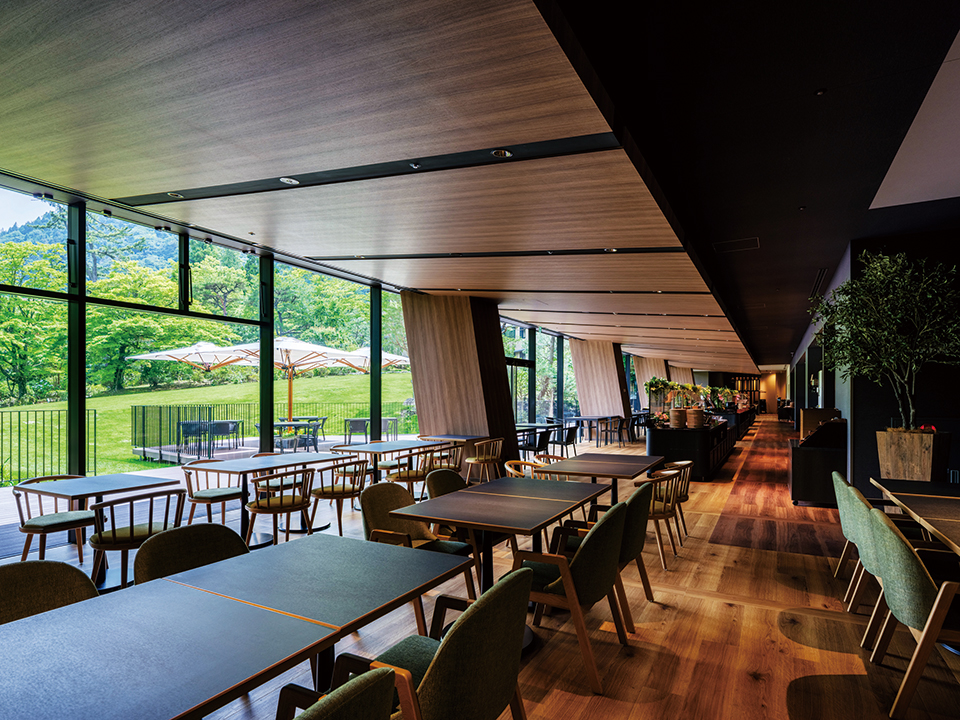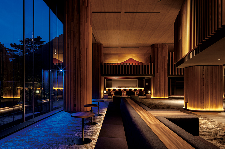 計画地は明治期より財閥の別荘地として開拓されてきた特別な場所である。往時の豊かな自然、風景、庭園、場所の歴史性を現代の文脈の中で引き継ぎながら、新しい時代にふさわしい体験ができるスポーツベット 着いたーを目指した。1959年に建てられた旧スポーツベット 着いたーは吉村順三氏による設計であり、風景に対し両翼を拡げ、山々の眺望と敷地の等高線から自然に導かれた美しい佇まいであった。この配置計画の継承と外装イメージの踏襲のため、各階にサイトPCによる小庇を設け、深い軒を持つ屋根と併せ風景の一部となるよう低く抑えた水平基調のファサードとした。この庇は梁型枠や仮設足場にもなり、急峻な計画地における施工合理化にも寄与した。インテリアは全館を通じて自然とのつながりを感じられるよう周囲の豊かな自然をモチーフとし、神奈川県産木材を多用している。各階共用部には特徴を持たせ、最上階には空へと眺望が開いた温泉大浴場・露天風呂を配した。フロント壁面には旧スポーツベット 着いたー外装の穴あきブロックを記憶や歴史を継承する象徴的なアイテムとして設えている。