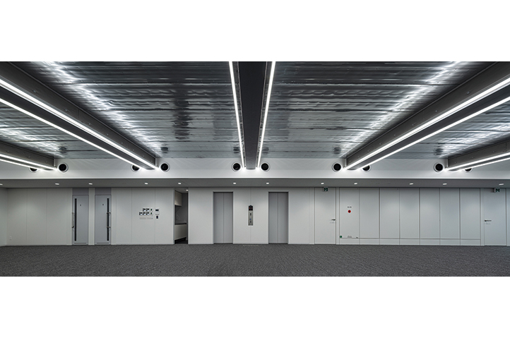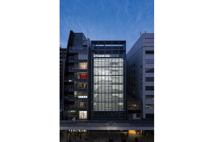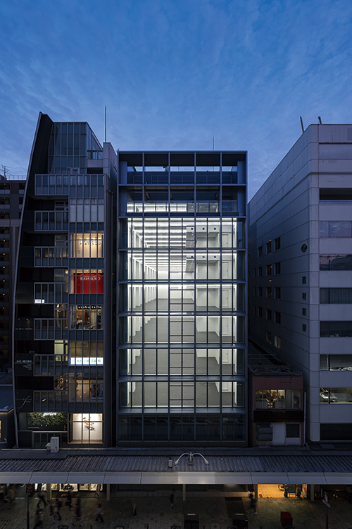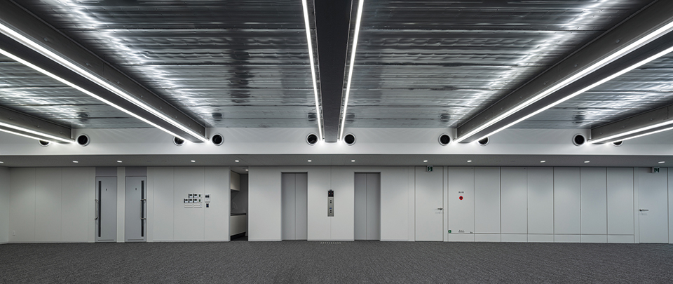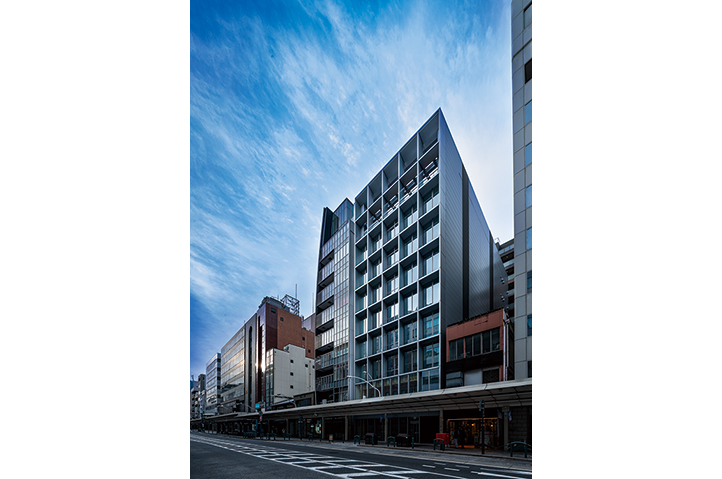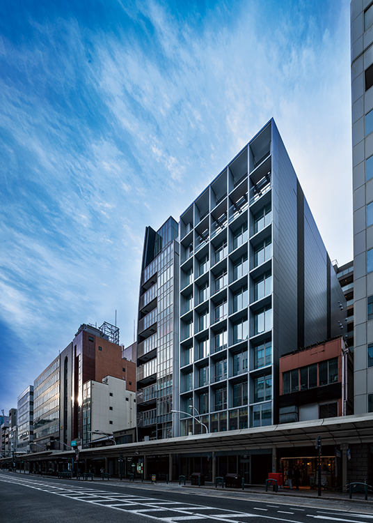 京都では間口が狭く奥行きが深い地域特有の敷地が多く、高さ制限も厳しいことから、テナントスポーツ ベット ioビルの供給不足が常態化している。このような場所で貸室の間口・面積を最大限確保しながら快適な執務室を実現すると共に、京町屋の通庭のようなエントランスをもつ、この地におけるテナントスポーツ ベット ioビルの新たなプロトタイプの創出を目指した。梁をフランジ露出側面コンクリート梁とし、天井をフェローデッキ現しとすることで、階高3200㎜ で天井高2950㎜を確保、31mという高さ制限の中で9層の断面計画を実現した。また敷地の奥行きを利用して、従来のシザース階段をさらに効率化した1階で2つの階段が前後に折り重なる「タンデムツイン階段」を計画した。これによりコアの平面形状がよりコンパクトになり、レンタブル比を高めながら、室内環境向上につなげている。