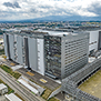 フラッシュメモリの世界有数の生産規模を誇るスポーツベット サッカー 夏期の北上工場第2製造棟である。高い生産効率実現のためにクリーンルームの最大化が求められ、短辺167m、長辺235mの大規模で最先端の工場を実現した。自然豊かな岩手の山々や北上川が望める管理棟を併設し、アルミカーテンウォールと金属パネルによるメタリックな外観は最先端半導体工場の顔となっている。製造棟はELVシャフトと冬期の着雪を防ぐための給気塔が巨大な壁面を分節化するアクセントとなるように計画した。管理棟のゲストエントランスの天井や来客受付の壁面には外観のパターンや基盤回路をモチーフとしたデザインとすることで、企業イメージを象徴する空間としている。重要顧客などにクリーンルームを説明する見学室は、生産および自動搬送の状況が分かるよう上下2段構成とした。様々な最新技術を盛り込んでおり、今後もスポーツベット サッカー 夏期の主要製造拠点の一翼を担い発展していくことを確信している。