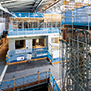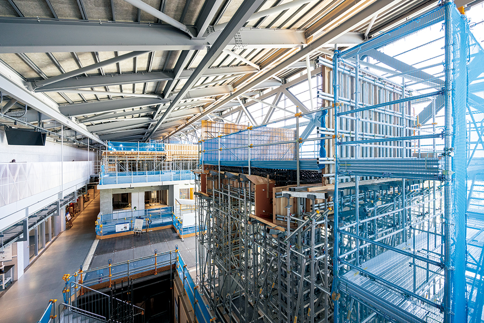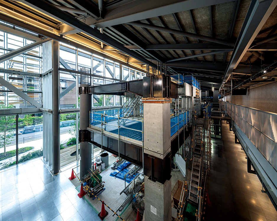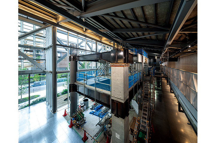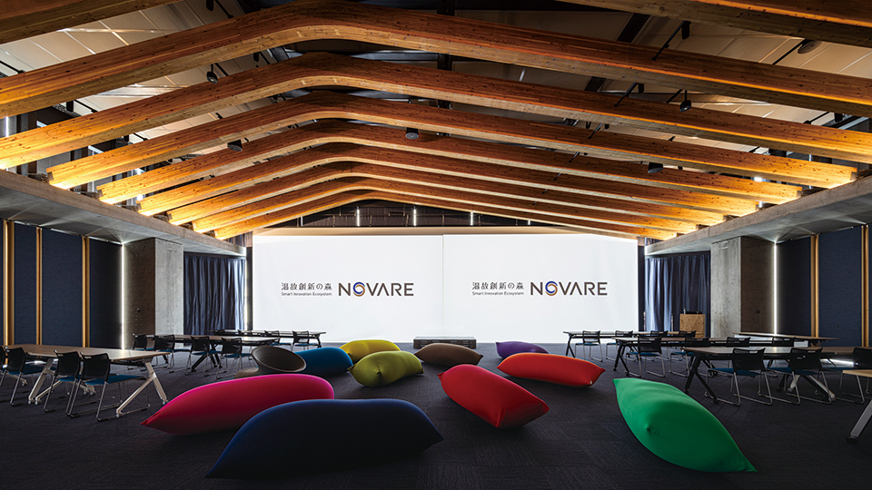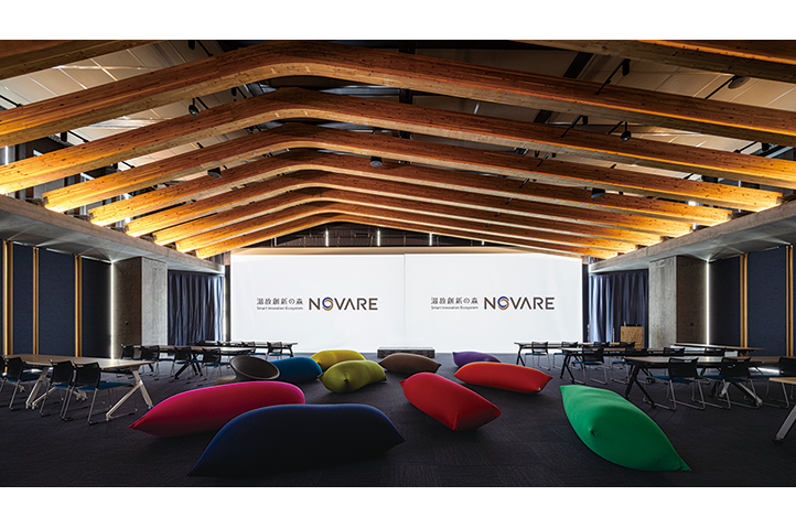 スポーツベット技術研究所の一部組織が移転するNOVARELabは、建築の基本となる構造や材料の研究、建設の最先端となるロボティクスとデジタルファブリケーションの研究開発拠点である。ものづくりの革新を目指すため、最先端かつ国内最高クラスの実験施設を融合し、ロボット、構造、材料の異分野連携が図れる空間構成となっている。各分野で独立しがちな異分野研究員の交流を促進するため、中心のオフィス空間を取り囲むように実験空間を配置し、多方面に連続する空間構成とした。建設技術のイノベーション拠点となるよう、実験ゾーン、研究ゾーン、イノベーションハブが視覚的につながり、流動性ある空間となっており、さらに、Novare Hubとも一体空間を形成することで、社内外と連携しながら研究開発を行い、イノベーションを促すことを目指している。