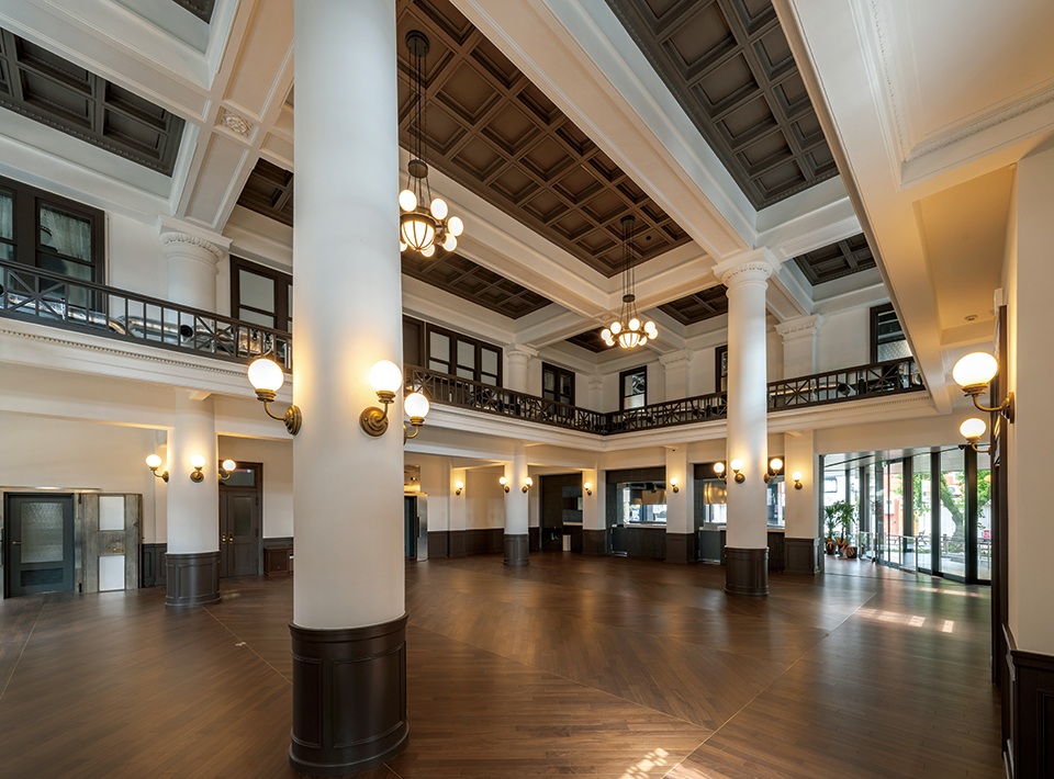 諫早銀行として清水組設計施工で昭和6年竣工、昭和55年にスポーツベット設計施工で増築された建物を九州ガスHDが取得、本社機能の移転と事業用駐車場を含めた活用を目指したプロジェクトである。名称となった「SEED1931」とは、創建年に植えられた種が再び芽吹くという、施主のプロジェクトへの想いがある。本館は補強後、当時の姿に復元、増築部は、全解体ではなく躯体を残し、一部減築・補強した。これにより本館のファサードを商店街から見え、自然光にも照らされた創建当時の姿に再生をしている。1階には隣地の小川に面してピロティを設けテラス席やフットパスを計画、新たなアクティビティが小川沿いに見えることで、市民に親しまれる地域貢献施設としている。失われていた天井や照明・建具は、当時の写真をもとに、丁寧に図面化・復元した。保存部分は現行法規へ対応させ、耐震補強・中性化抑制も実施している。また現代の環境建築として先導的な性能を担保するべく設備機器を新設することでZEB-Readyを取得している。