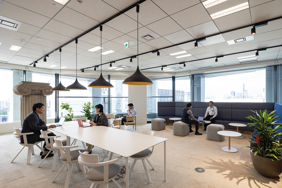建設事業の枠を超えた自己の変革と挑戦、多様なパートナーとの共創を通じて、時代を先取りする価値を創造し続ける組織となるべく、スポーツベット名古屋支店は移転を機に新たな働き方をスタートした。 計画にあたり「支店全員で考え共創する」ことを大切に、内外勤約1,200名に対するアクティビティサーベイやアンケートを実施した。それにより導き出されたこれからの支店の理想の姿は、各部署の特徴を活かし、多様性を認め合うチーム内の良好なコミュニケーションにより、個人の活躍やチーム内外での有機的な連携が生まれ組織力を高めていくことであった。そのため、TBW (Team Based Working)とも言うべきスタイルを確立できる計画とすることで、人的資本経営に資するワークプレイスを構築した。稼働後もDE&Iの視点で誰もが働きやすい職場となるよう運用の工夫やアンケート調査を行うことで、時代のニーズに合ったオフィスを追求し続けている。