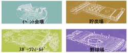 鉄骨トラスとPC鋼線の組み合わせにより、フラットな大スパン(50~200m)のものの他、アーチ型、切妻型等、目的に合わせて多彩な構造デザインが可能です。