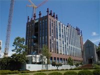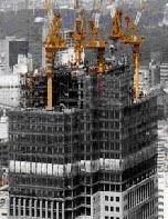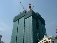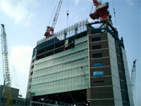 従来、鉄骨だけを先行して組み立てていたのに対して、躯体および外装工程を最上部に集約するため、施工中の建物の外観がきれいで、かつ安全に施工することができます。