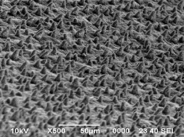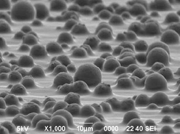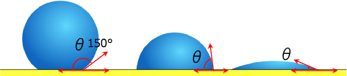 ハスの葉が水を弾くことはよく知られていますが、これは葉の表面にある無数の微細な凹凸が、葉と水滴の接する角度(接触角)を約160°に保っていることによります。