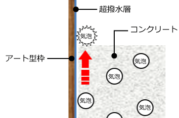 本技術では、型枠表面のスポーツベット ボーナス 登録カジノ層により、型枠面に到達した気泡がその場にとどまることなく、浮力によって型枠との界面を滑るように外部に抜けていくことで、脱型後のコンクリート表面に生じる気泡痕を大幅に抑制します。