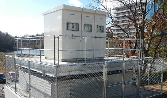 「安震スベットネット スポーツダー」の実用化第一弾は、日本ピラー工業(株)三田工場の敷地内に設置した屋外キュービクルです。規模は、幅260㎝、奥行き260㎝、高さ265㎝、重量14tで、安震スベットネット スポーツダーを4台設置しています。