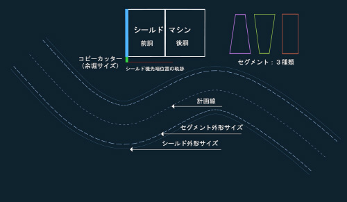 なお、模擬掘進中に掘進誤差の許容値を上回った場合や、シールド機とセグメントが干渉する可能性が出てきた場合は、その時点で掘進終了となります。