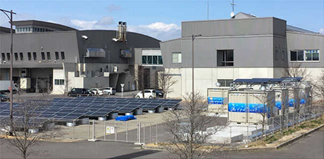 2019年度より郡山市総合地方卸売市場管理・関連店舗棟(延床面積:4,310m2、電力需要:100kW)に実装・運用し、課題の抽出・解決を行っています。