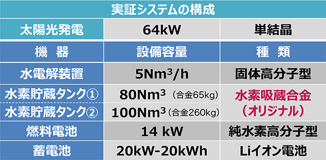 実証システムは、太陽光発電装置(出力20kW)、水電解装置(5Nm3/h)、スポーツベット サッカー 夏貯蔵装置(約40Nm3)、燃料電池(出力:3.5kW)、蓄電池(出力:10kW)からなり、延床1,000m2程度の建物利用に特化したシステム構成としました。