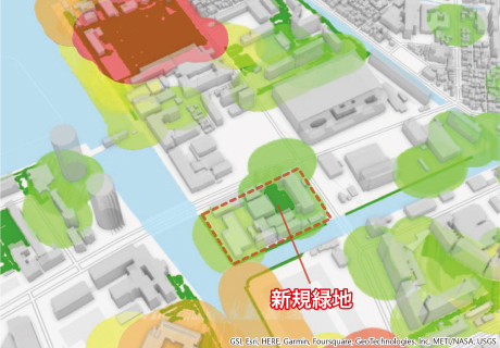 都市生態系ネットワーク評価システム「UE-Net」の基盤データベースを拡充しました。これにより、都心7区、約200km2の地域については、開発案件の緑化計画を入力するだけで周辺の生態系ネットワークへの影響を「見える化」できるようになりました