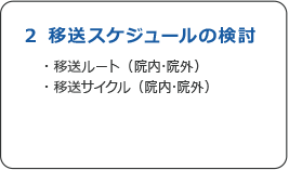 また、二つのスポーツベット ブラックジャックの院内物流(医療材料・検査検体・医薬品・食事・リネンの供給方式)について詳細な現状調査を行い、「いつ」「誰が」「何を」「どのように」搬送しているかを明らかにし、新築移転後の合理的な運用方法を検討しました。