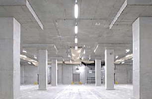 「シミズNew RCSS構法」は、高強度コンクリートを使った圧縮に強いRC柱と、長スパン化が可能な鉄骨梁とを独自の接合技術で一体化し、高強度・高耐震性を実現する技術で、柱を少なくして倉庫の収容効率を上げることができます。また、RC柱や免震装置の基礎をプレキャスト化するなど、徹底した工業化によって工期を短縮すれば、発注者のニーズに応えることが可能です。