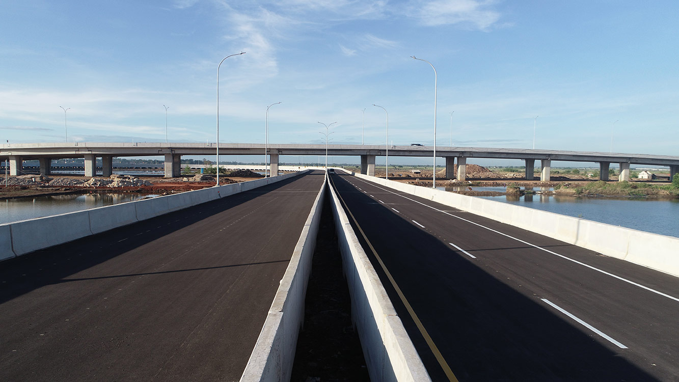 | 構造・規模 | 総延長8.2km、幅員10.62m×2(片側2車線) 盛土700m、パイルスラブ5,919m、橋梁1,642m |