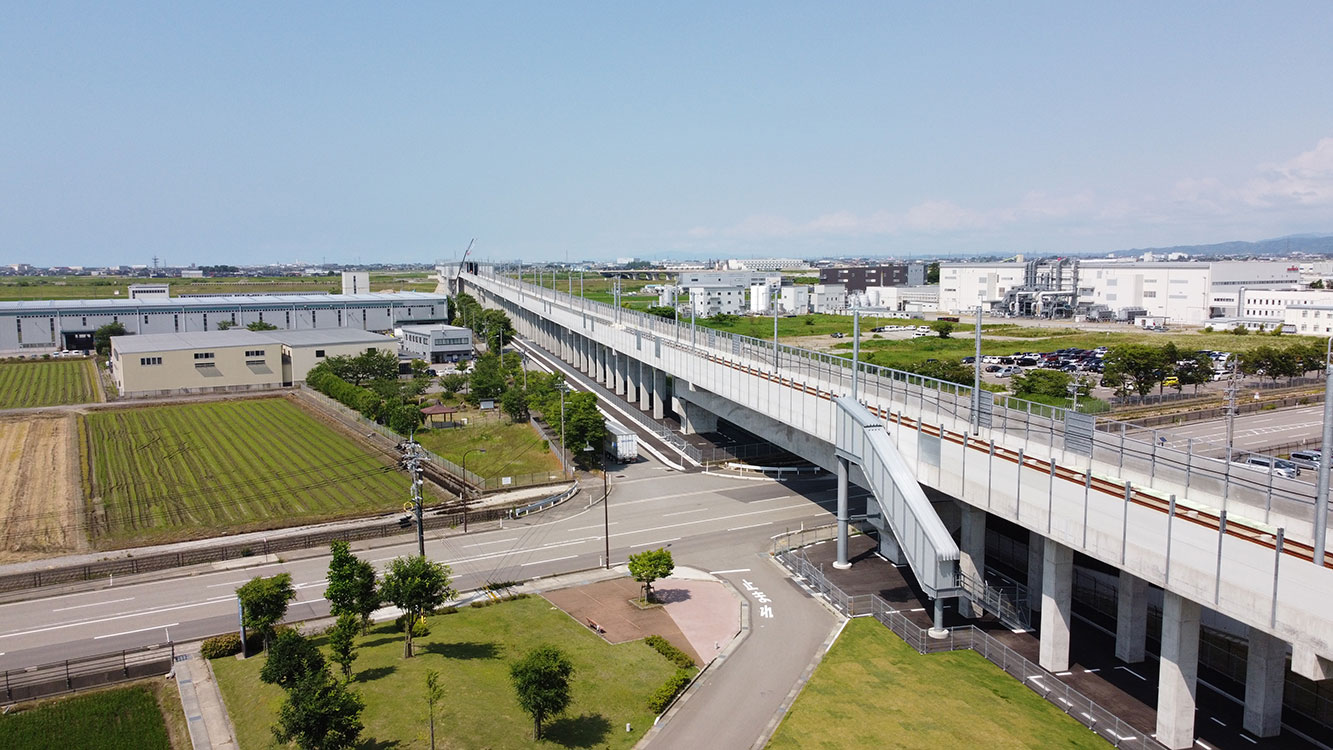 | 構造・規模 | 高架橋:1,575m 手取スポーツ ベット あい お ー:558m ニューマチックケーソン橋脚:6基 RC橋脚:27基 PC桁:9連 ラーメン高架橋:24連 他 |