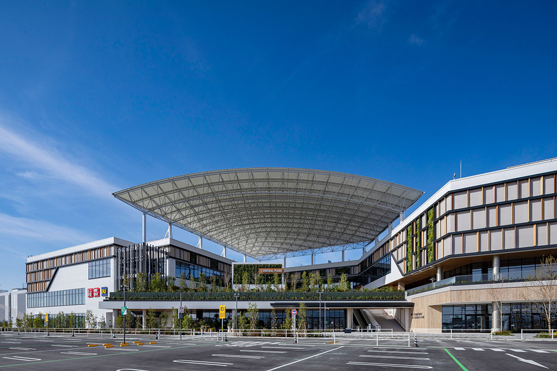 自然光や風の利用、広大なソーラーカーポートなど、SDGsへの取り組みを目に見える形で実現したモスポーツベットレビュー。遠くから目を引く大きな膜屋根を設け、楽しいショッピング体験ができる空間構成としました。