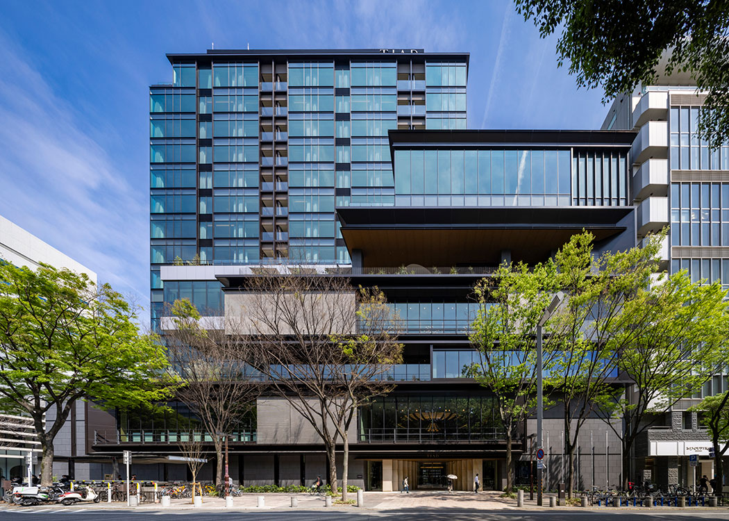 大通りの緑地帯に建つラグジュアリーホテル。テラスや客室のバルコニーなど、都会にいながら自然を感じて過ごせる空間を設け、ゲストがリフレッシュできる建築を目指しました。
