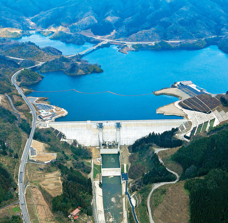 | 構造・規模 | 重力式コンクリートウィリアムヒル スポーツベット 堤高 90m 堤頂長 440.8m 堤体積 689,000m3 総貯水量 6,080万m3 |