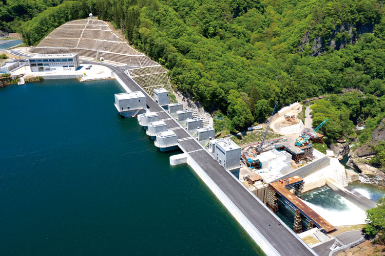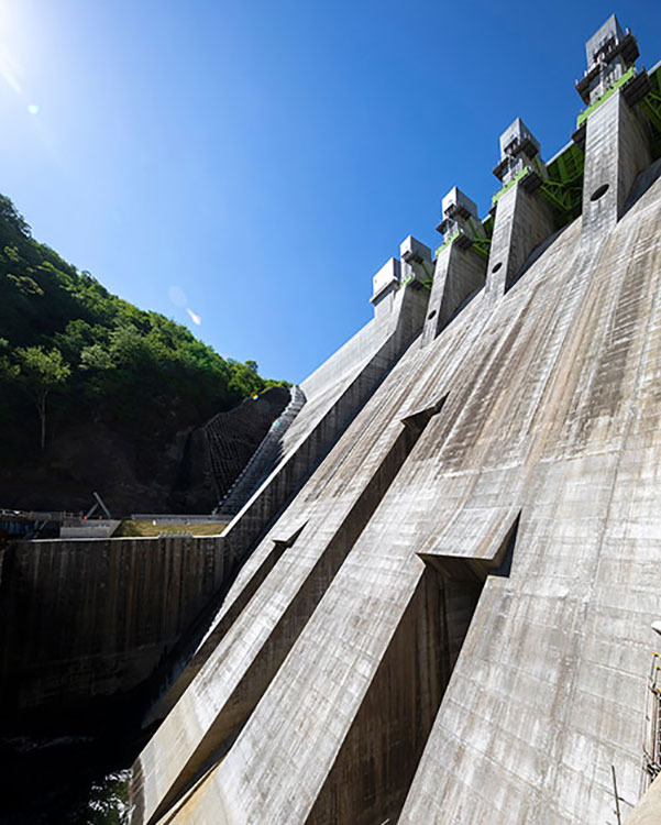 堤高116m、総貯水容量約1億m3。計画から完成まで実に68年もの年月を要したスポーツベット 登録が竣工を迎えました。堤高100mを超えるダムの建設は、当社では初めての経験です。本工事では、施工日数を短縮する技術提案が求められていました。堤体のコンクリート打設において、打設速度の速い内部コンクリートを打設速度の遅い外部コンクリートよりも先行して施工して全体の打設速度を向上させる巡航RCD工法を採用し、月間最大7万m3のコンクリートを打設。その他、点検用通路や洪水吐の一部などのPCa化を取り入れ、大幅な工期短縮を実現しました。