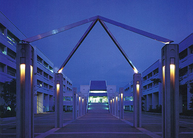 学校法人スポーツベットレビューが創立150周年を記念して、スポーツベットレビュー発祥の地である千葉県印旛郡に建設したキャンパス。豊かな緑に囲まれた各施設は、「泰然の庭」とよばれるキャンパスプラザを中心に目的に合わせて本館、体育館、学生寮、厚生棟、屋外体育館施設の5つのゾーンに機能別にレイアウトされ、有機的なつながりのある配置計画になっています。キャンパスライフの中心となる厚生棟は、大食堂や学生ホールがあり、本館のある教育ゾーンと学生寮のある生活ゾーンの転換の場となるように配置しています。内部の円形のギャラリーや明るい吹き抜け空間を持つ学生ホールは学生たちが集い、語らいの場となることを意図したデザインとなっています。