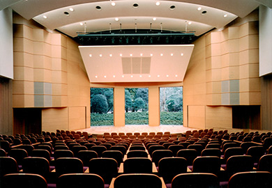創立50周年を記念したホールを中心とした新館です。敷地は以前久邇宮邸だった場所で、現在でもゆかりのある建物が現存しています。その場に新しくスポーツ ベット 投資の交流施設としてのホールを中心とした新館を設置し、場の記憶、力を復元することを考えました。新3号館はキャンパスに点在する記念施設を引き立てる性格の建物として、既存建物どうしを日常動線で結ぶ位置に配しました。外装は既存建物の色調に合わせた落ち着いたグレー色の二丁掛タイル、45モザイクタイルを中心とした仕上として他の施設になじむようにし、内装も既存施設と同様に腰壁を木貼として既存との整合をとりました。宮代ホールは講演を中心とした目的の施設ですが、残響可変壁を反転させることで、室内楽にも適した響きを持つホールとなります。