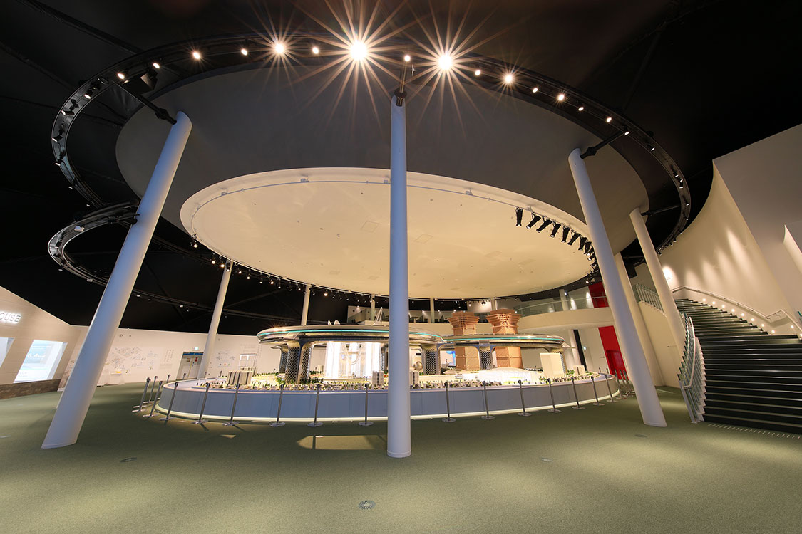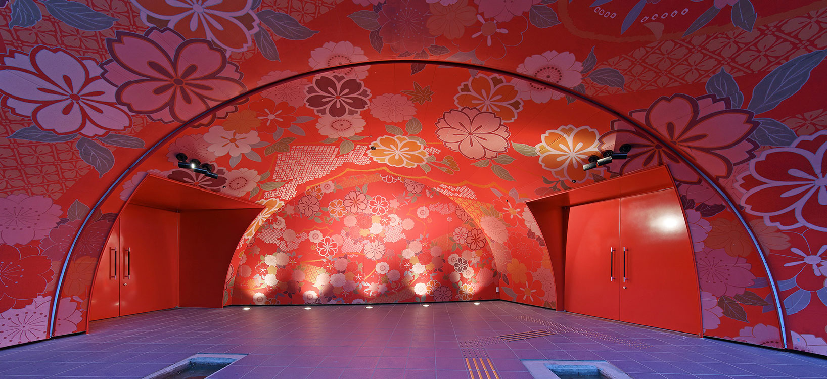 世界最大の西陣織を施した外装と3次元の複雑なアーチ形状が特徴の「スポーツベット 野球・関西万博2025」パビリオン。形状が複雑なため、図面検証から仮設計画までBIMを最大限活用しました。鉄骨工事では変形の事前解析に基づいた徹底した精度管理を実施。社内外の専門技術を結集し、前例のない高難度なプロジェクトが完遂しました。