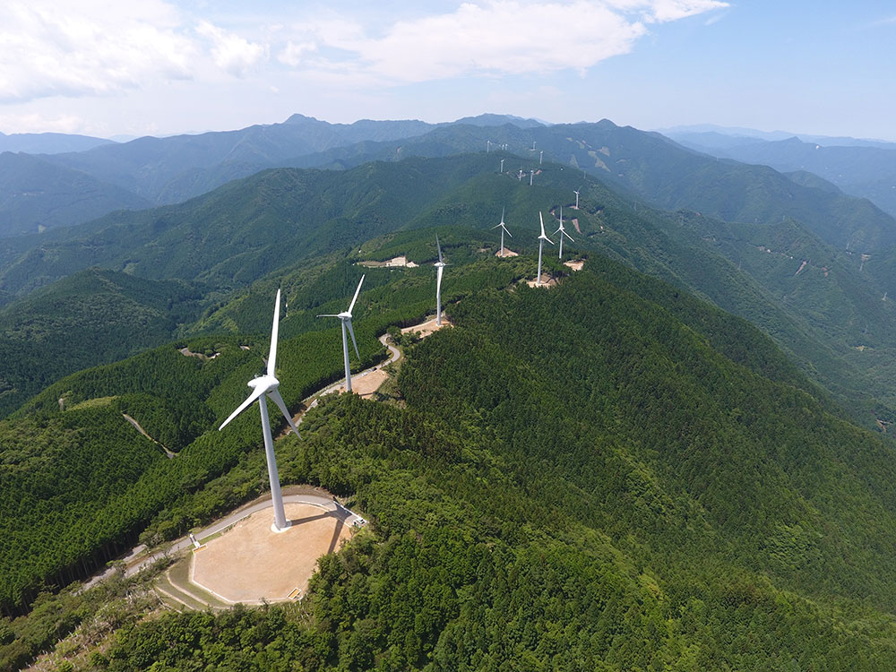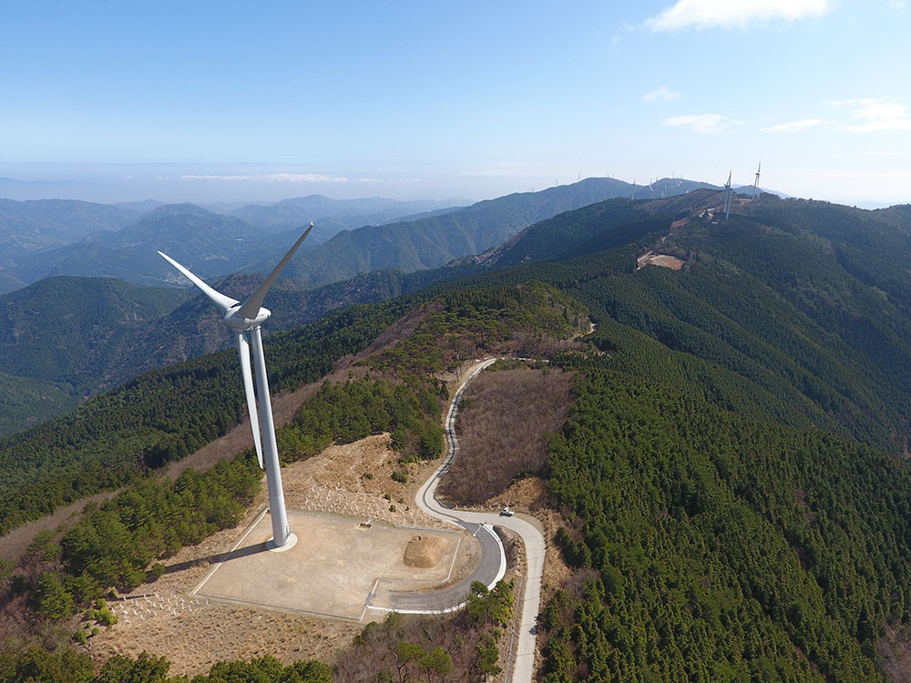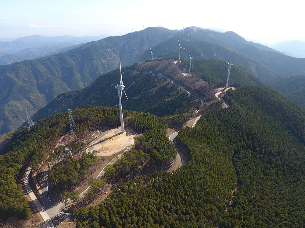 2.3MWの風力発電機15基を設置するための工事。風車輸送のため既設林道を拡幅したほか、工事延長10kmの間に道路新設、風車ヤード造成、風車基礎構築の工事を行いました。豪雨、降雪に苦労しましたが、無事に完成させました。