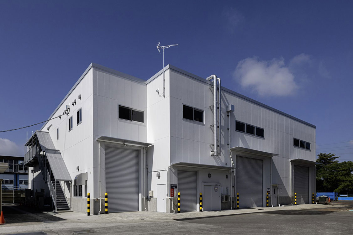 産業廃棄物の保管倉庫兼事務所。当社が設計施工した既存の建屋と調和する外観としました。新3号焼却炉の建設に先駆けて建築したため、将来の保管庫の増築を見据えた使い勝手の良い施設を実現しました。