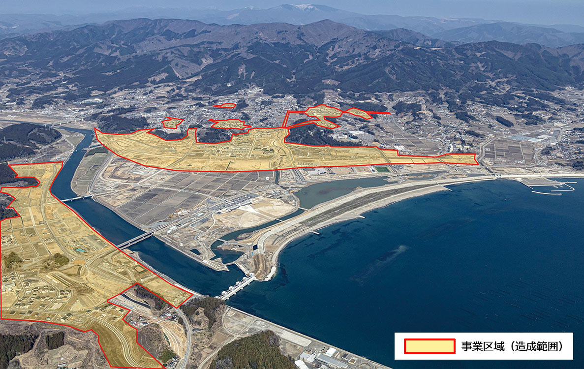 | 構造・規模 | 宅地整備面積:298ha 掘削土量:約1,200万㎥ 盛土量:約1,100万㎥ |