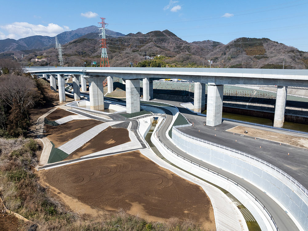 | 構造・規模 | 切盛土工 約40,000m3 軽量盛土工 約16,000m3 調整池 2か所 付替水路 800m |
