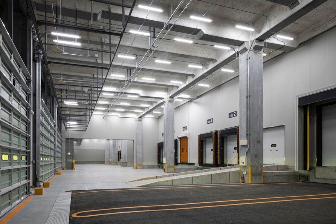 医薬品を保管する物流施設。免震構造とし、浸水対策も行った。倉庫内の温度管理のため、外壁は高い断熱性能を確保。空間デザインコンセプトを「Wellness」とし、居心地良く、働きやすい施設を目指しました。