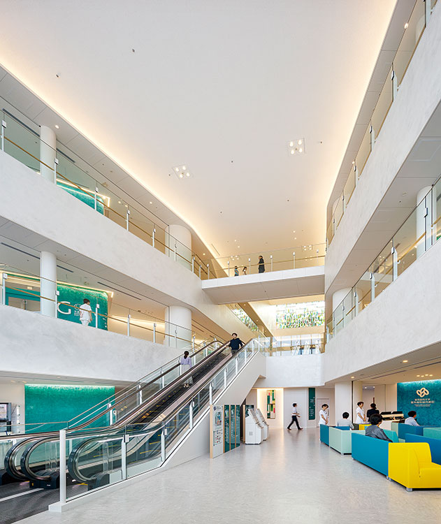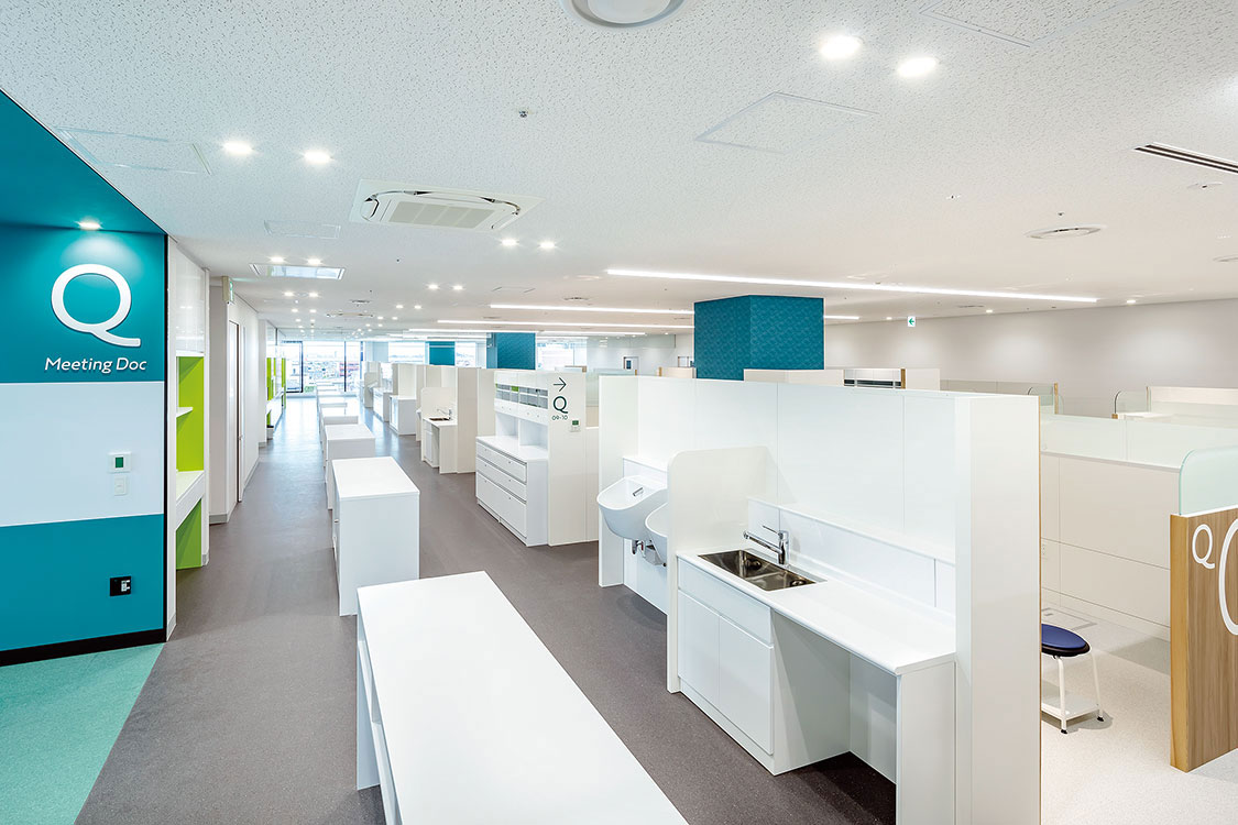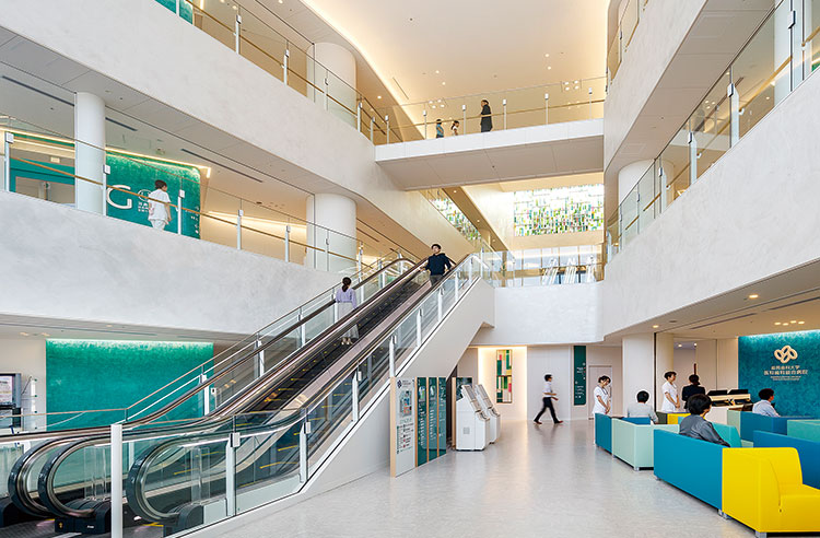 「つなぐ」というコンセプトの下、「地域と社会」「教育と研究と臨床」「医科とstake スポーツベット」「未来へ」の四つのテーマを考案し、院内連携と施設利用者数を向上させる設計を目指しました。中でも、こだわって設計した場所は、stake スポーツベット大診療室です。その大空間に全長56mの2本の通路を交差させて配置。「コネクティングストリート」と名付け、当施設を利用する医師、stake スポーツベット医、学生や患者とさまざまな人々が物理的、視覚的につながる場所を作りました。
