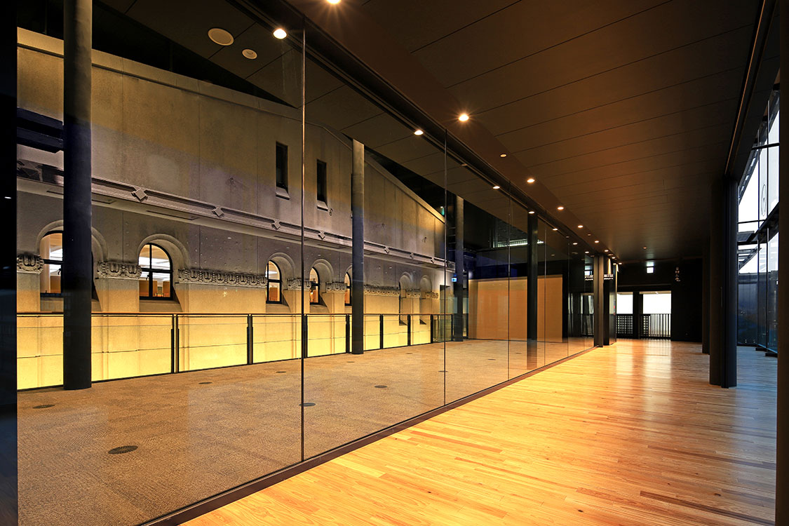 今回の工事は、システムベット スポーツ市の本・西・分庁舎すべてが接続する重要なフェーズでした。道路に面している部分はスロープの一部のみ。免震構造の建物を増改築するため、仮拘束や解放を見込んだスペースの確保など複雑な手順を求められましたが完工できました。
