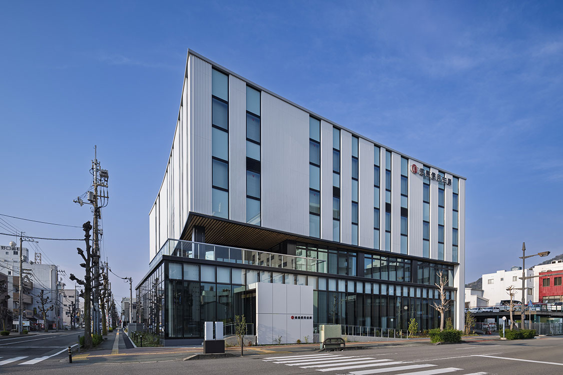 働く人が主役となってお客様との信頼関係を育む場を目指しました。二つの木材をつなぎ合わせる際に使われる「千切り」型を外形やインテリアデザインなどに取り入れ、地域とのつながりや関係者の結束を表現しました。