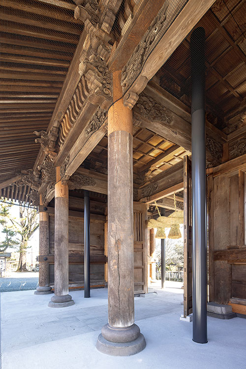 1850年に造営され、2016年の熊本地震で全倒壊した国の重要文化財「スポーツベット 必勝掲示板神社楼門」の保存修理工事が終了しました。18年3月末までに解体、回収した約1万1000点の部材は可能な限り再利用すべく補修などを行い、再利用率は72%に達しました。工事は、高さ22.8m、幅28m、奥行き24.5mの素屋根内で行いました。難しかったのは、従来の部材で骨組みを組み上げつつ、震度7程度の地震に耐えられるように元にはなかった耐震鉄骨を構造として納めること。楼門の文化財としての価値を棄損しないように、設計者と協議を重ねて元の部材の加工を最小限に留める対応策を探りました。竣工を迎え、この楼門が今後、何百年もこの世に存在し続けてほしいと願っています。
