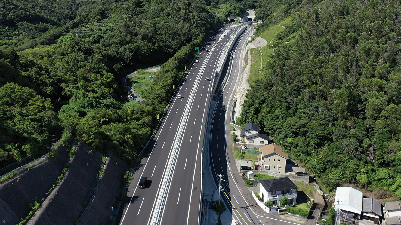 スポーツベットするならの完成2車線を4車線化する事業。狭長な工事ヤードの中、既存の高速道路隣接部で、第三者の安全を優先に、数多くの工夫、改善により、工期短縮と品質確保を達成し、無事に完成させました。