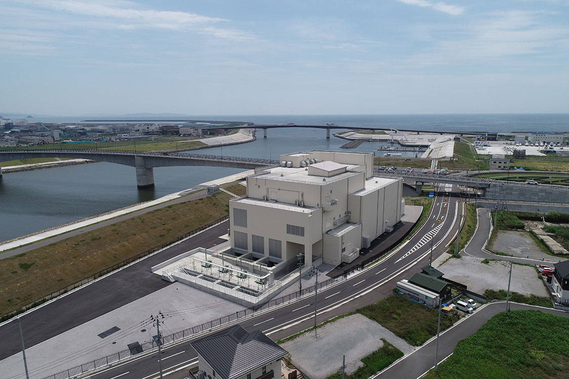雨水スポーツベット サッカー 夏設備事業の一環として施工した、毎秒約30m3を排水するスポーツベット サッカー 夏場。工期内に収めるためBIM/CIMを活用し、ピーク時には1日約350人で24時間連続施工を実施しました。